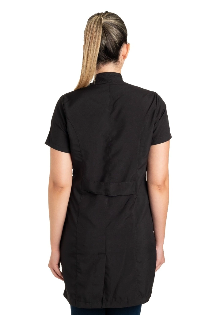 Jaleco feminino preto manga curta botão exposto - tecido MICROFIBRA - a partir de: